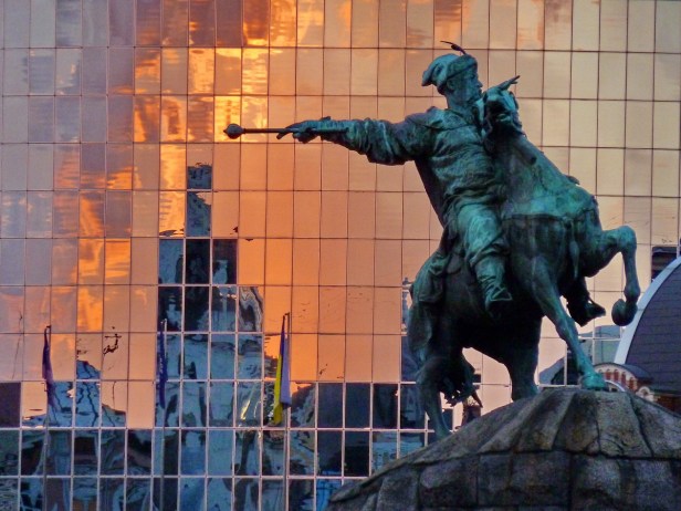 La imagen anterior está tomada desde la plaza de Santa Sofía, ya que las dos plazas se encuentran enfrentadas en los extremos de la avenida de San Volodymyr, por lo que desde cualquiera de ellas se podía divisar las actividades de la otra.