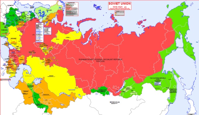 Además de ésas repúblicas provisionales, cuya duración era de 12 días hasta varios meses, fueron creadas las repúblicas socialistas soviéticas, base futura de la Unión Soviética, o como las llamaban los propagandistas: las “15 hermanas”, que en principio eran 16. Entonces, los bolcheviques no tenían suficiente dinero ni ejércitos en la captura de grandes áreas. Su tiempo ganador se basaba en el entusiasmo de la población, que creía el cuento de la ‘felicidad universal’, pero rápidamente se vio lo que la ‘plaga roja’ era capaz de hacer, destruyendo la cultura de sus ancestros, religiones, lenguas y propiedad privada.