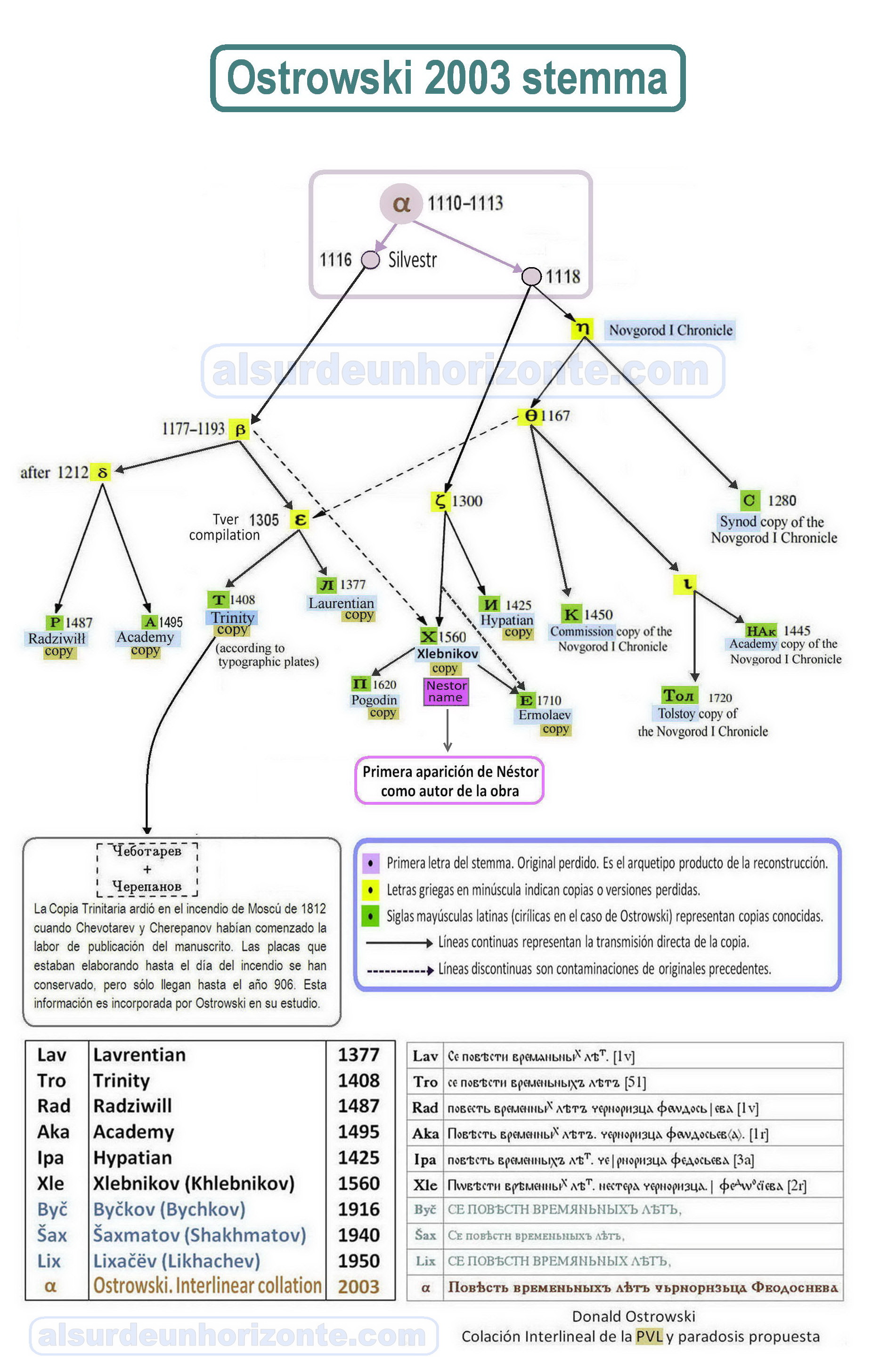 En la elaboración del artículo anterior «La Crónica de Néstor, reconstrucción de la Crónica Primaria de la Rus» aparecen referencias a la Crónica de Nóvgorod como es el caso del estema elaborado por Ostrowski en su estudio de la PVL: Povist Vremyannyj Lit (uk) Povest Vremmenikh Let (ru) → Relato de los años pasados.