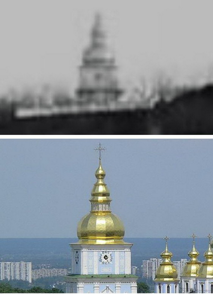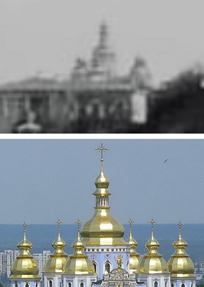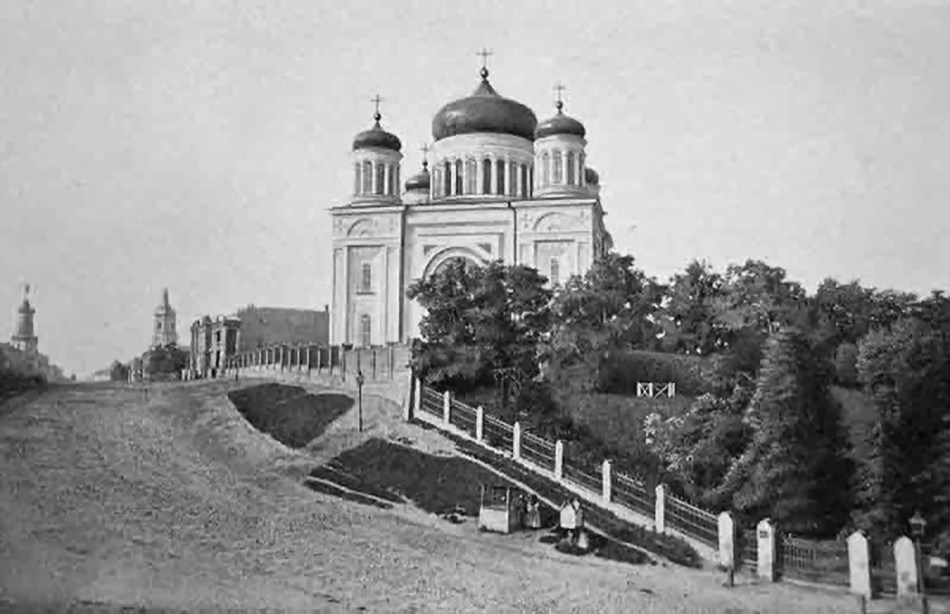En la fotografía podemos observar como testigos, cuatro edificios históricos. Tres de ellos sucumbieron a la barbarie del comunismo bolchevique en la década de 1930. Sólo uno ha sido reconstruido.