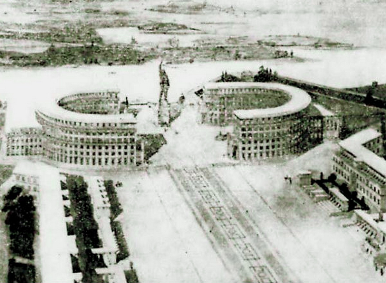 En su lugar se planeó construir dos edificios simétricos: el Consejo de Comisarios del Pueblo y el del Comité Central del Partido Comunista de Ucrania. En medio de los dos edificios, una estatua de Lenin de 75 metros de altura. El proyecto de este segundo edificio provocó la demolición en vano en 1939 del Monasterio de San Miguel, construido en 1113 (reconstruido en 1998) ya que solo se completó el primero.