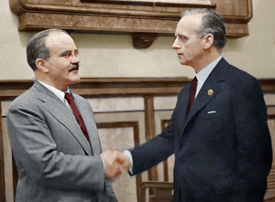 23 de agosto de 1939. Imagen coloreada. Tratado de No Agresión germano-soviético.