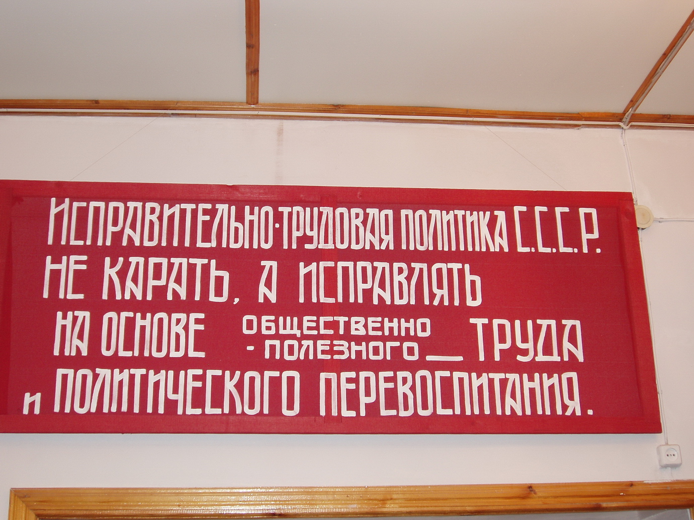 «Política correctora laboral de la URSS. No castigar sino corregir. Basada en la labor benéfico-social y reeducación política».