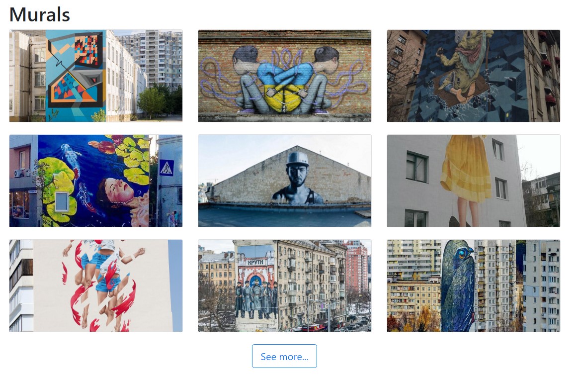 Desde 2014, artistas de Ucrania, España, Argentina, Australia, Alemania, Gran Bretaña, Portugal y otros países han decorado más de un centenar de casas con murales, y esta tendencia continúa. Los murales ya se han convertido en una verdadera decoración de Kiev y tienen todas las posibilidades de convertirse en su nueva tarjeta de presentación. Actualmente la web tiene 171 murales y 35 artistas.