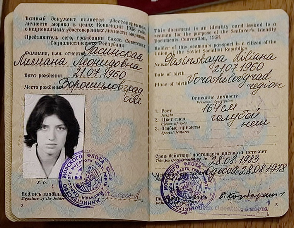 Odesa. Pasaporte de marinero de Liliana Gasinska con 18 años y cinco semanas