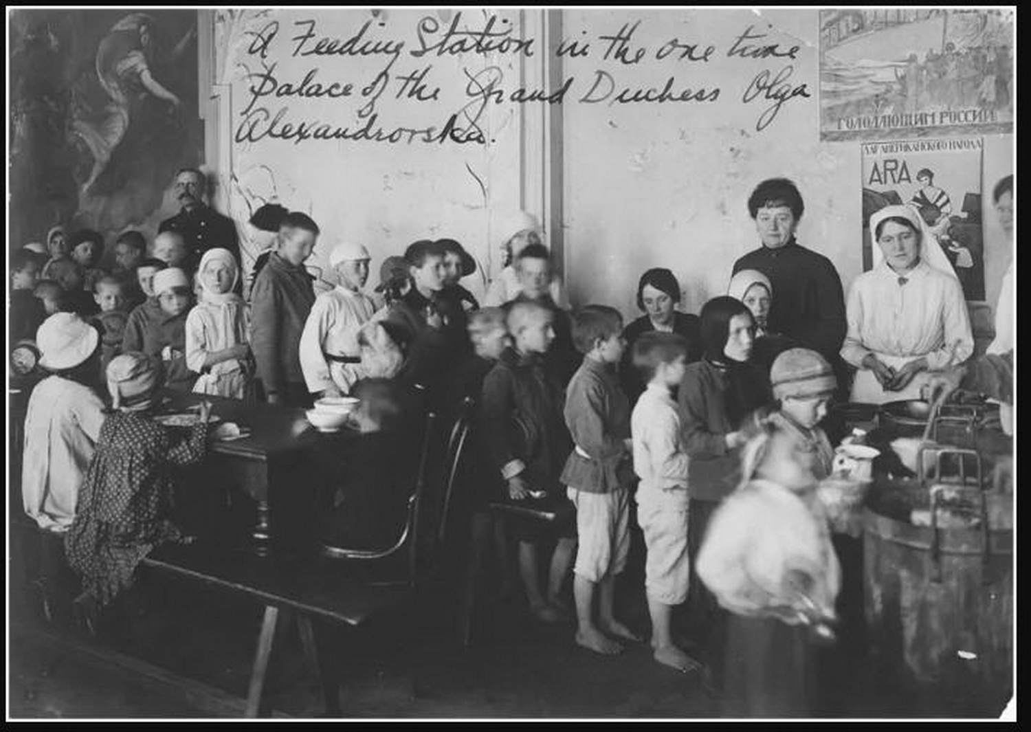 La hambruna en la región del Volga de la Rusia soviética (1921-1922) fue provocada por la inepta política económica del gobierno soviético, que se cobró, según las estimaciones más conservadoras, 5 millones de vidas. En esta ocasión EE.UU. ayudó a los rusos con alimentos a través de la «American Relief Administration», así como la ARA (Administración de Ayuda Estadounidense) y la Sociedad Cuáquera Americana.