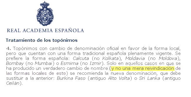 Sus críticos aducen que este tipo de sugerencias son meras declaraciones de intenciones sin consecuencias prácticas, pues la adaptación de nombres es un fenómeno perfectamente normal en casi todas las lenguas que no puede suprimirse por decreto.