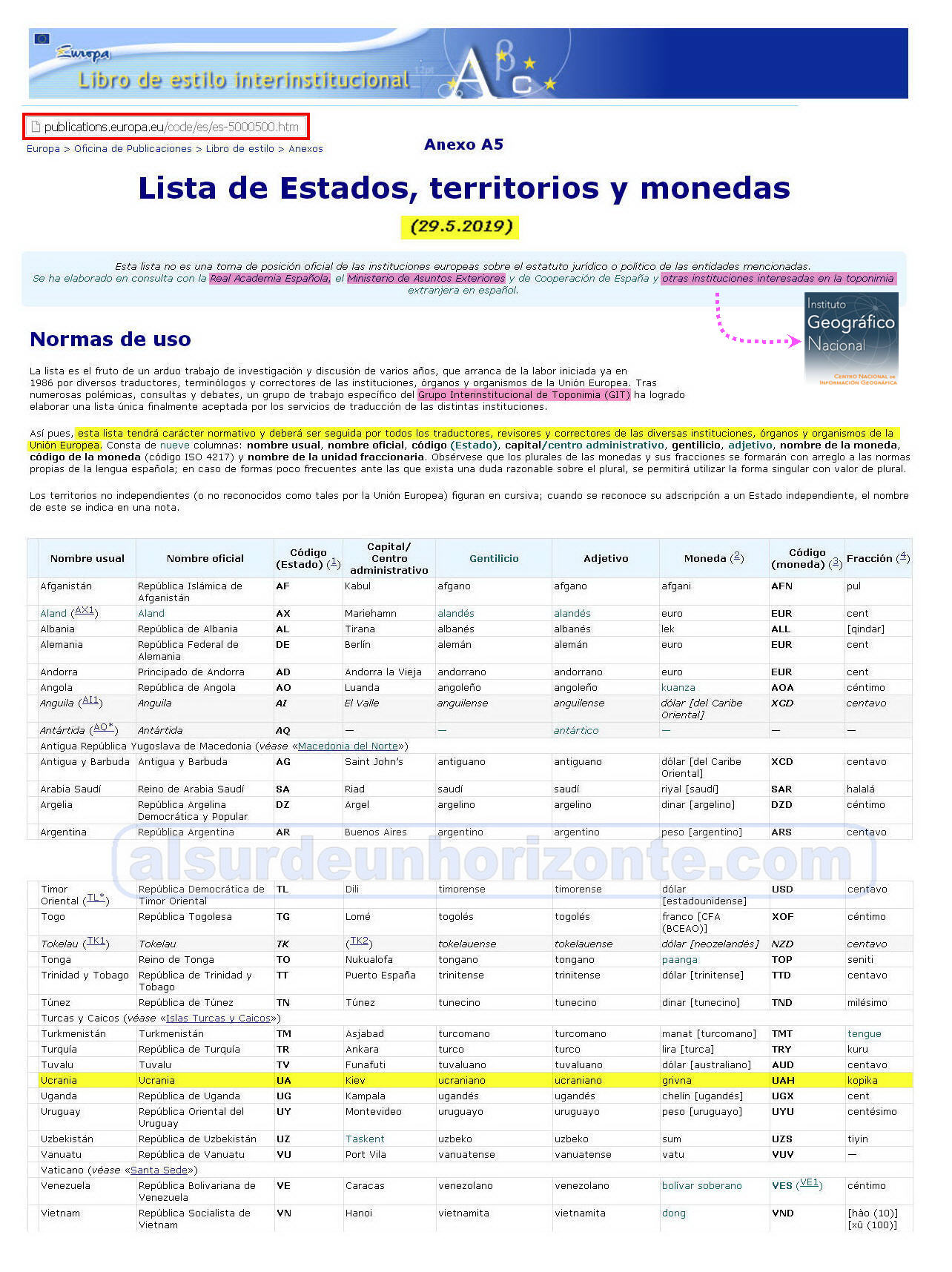 • Si para solucionar todo esto, tengo que ajustar mi vocabulario a la exigencia de una minoría; por principios y por coherencia no estoy dispuesto. Si colaborar en una causa significa tener que acatar ciertas consignas de una minoría que no tienen un fundamento oficial, no lo voy a hacer, porque vuelvo a repetir una vez más por si aún no quedó claro: en España el término KIEV es el oficialmente aprobado por los organismos e instituciones competentes: el ANE del IGN, el MAEC y la RAE. y en Europa está oficialmente aprobado por el compendio de normas establecidas para la lengua española por el Grupo Interinstitucional de Toponimia (GIT) en el llamado Libro de estilo interinstitucional de uso obligatorio para todos los traductores, revisores y correctores de las diversas instituciones, órganos y organismos de la Unión Europea.