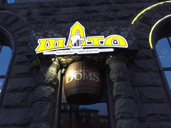 Kiev – Restaurante Шато (Cható) transcripción del francés Chateau. (Castillo). Fonéticamente: Cható.