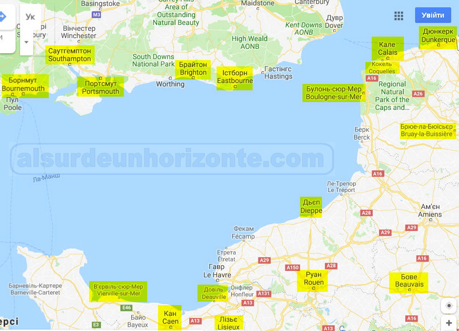 Idiomas como el inglés o francés de ortografías más antiguas son mucho menos fonéticos por la razón contraria. Esto hace que podamos observar rápidamente en la siguiente imagen que en ucraniano los nombres de ciudades y pueblos de Inglaterra o Francia son el resultado de transcripciones y no de transliteraciones.