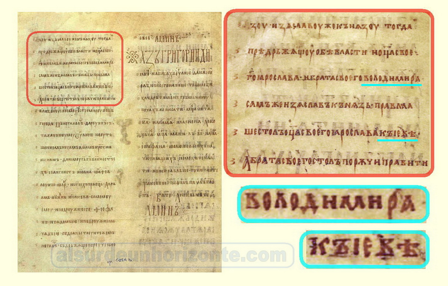 «Volodimir» y «Kiev» en la posdata final del Códice de Ostromir de 1057