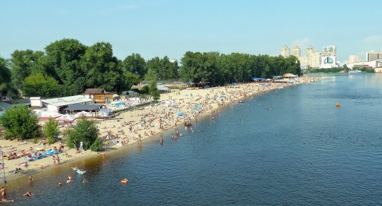 Las playas de Kiev formadas por el río Dniéper (Dnipró para los kievitas) son de arena casi tan blanca y fina al tacto como las de Huelva. (Lo juro). Las aguas tiene un tono rojizo por el material orgánico que el río arrastra.