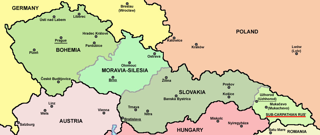Los nombres no oficiales alternativos utilizados en Checoslovaquia antes de la II Guerra Mundial eran:
