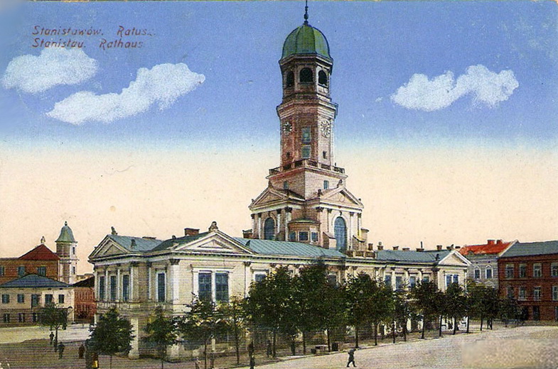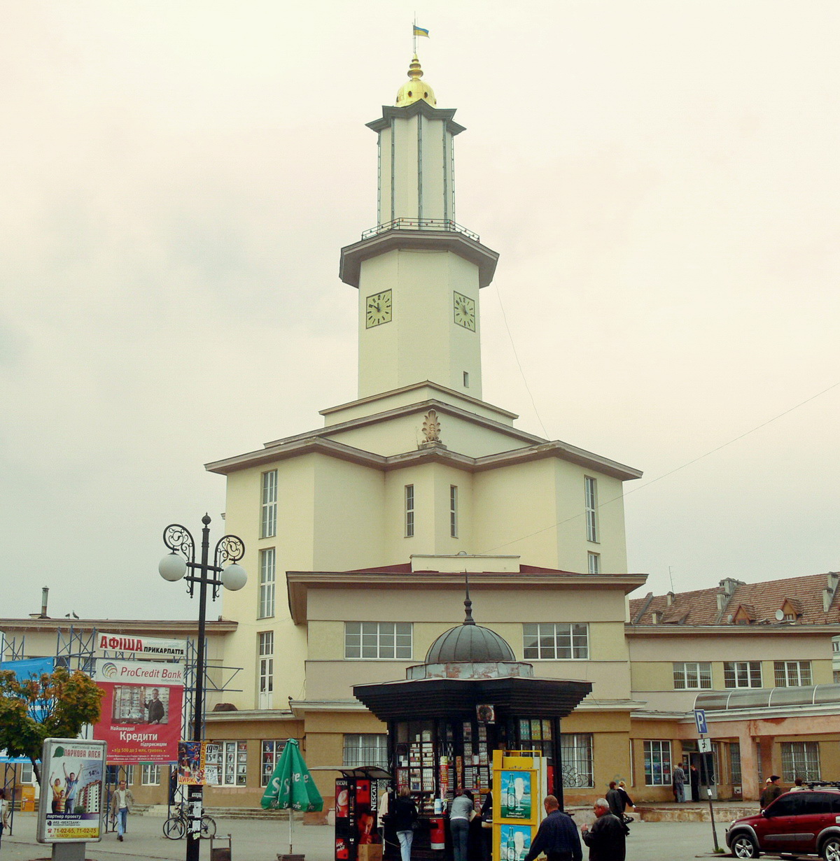 El edificio que preside la plaza es el ayuntamiento cuya construcción de estilo art-decó se debe al proyecto ganador en concurso celebrado en 1929, finalizándose por completo en 1939. La torre central evoca las existentes en los antiguos edificios que precedieron a este, cuyo uso estaba destinado a la vigilancia de incendios y en el edificio original de 1672 a la vigilancia de las tropas turcas y tártaras durante la guerra turco-polaca. El edificio predecesor del actual era de 1870 y fue dañado gravemente en 1915 por la artillería austríaca durante la I Guerra Mundial. Este a su vez fue el resultado de reemplazar el anterior edificio desaparecido en un incendio en 1868 quedando solo el esqueleto de hierros de la armadura. En todos ellos como digo sobresalía la torre de vigilancia de incendios, recordándome a los vistos en el barrio de Beyazit de Estambul y el museo Chernobyl (comparte edificio con el parque de bomberos) en el barrio de Podil de Kiev.