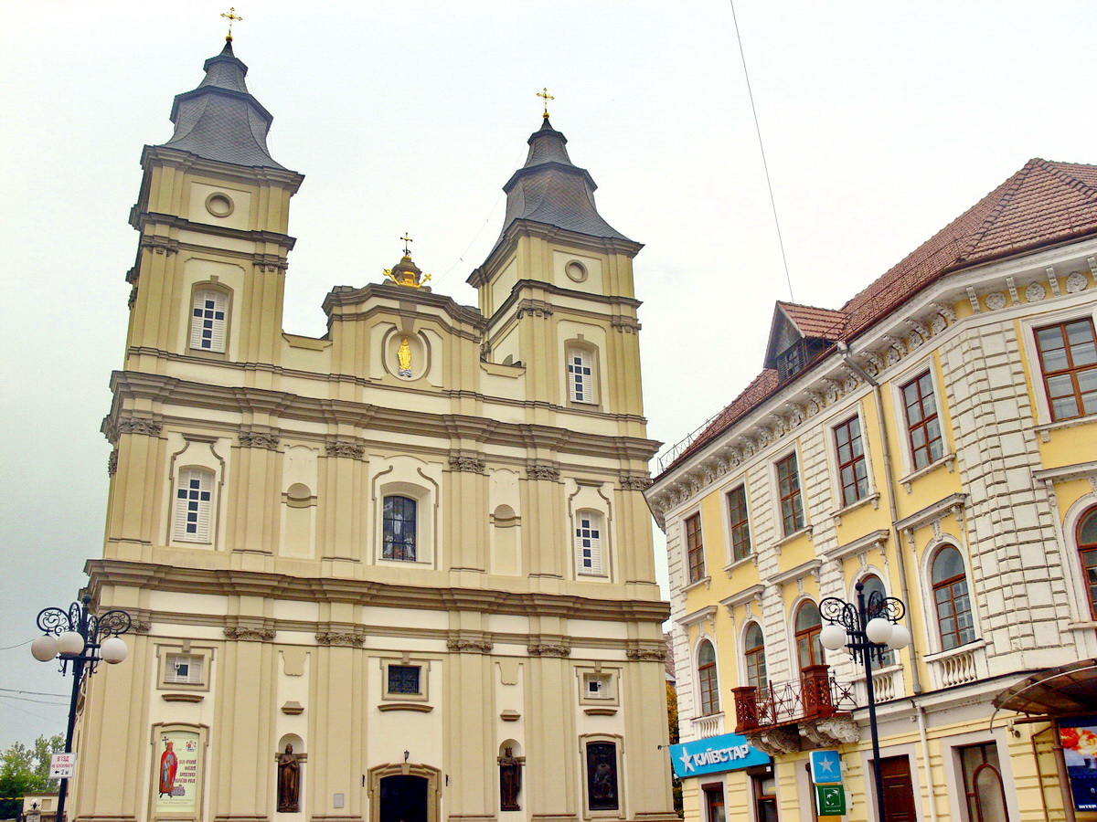 33 – La iglesia de la Santísima Vírgen está considerada como una de las más antiguas de Ucrania, remontándose según algunos historiadores al siglo XII, aunque esto no está del todo probado, La documentación disponible sí la hacen ser el templo más antiguo de la urbe. Sus orígenes probados se remontan a 1662 año de la fundación de la ciudad y consistía en una pequeña iglesia católica hecha de madera. Siete años después de su construcción es elevada a la categoría de Colegiata. En 1703 se acaba siendo el actual edificio hecho de ladrillo. Fue sede temporal del Museo Geológico en 1965 y actualmente alberga el Museo Regional de Arte Sacro.