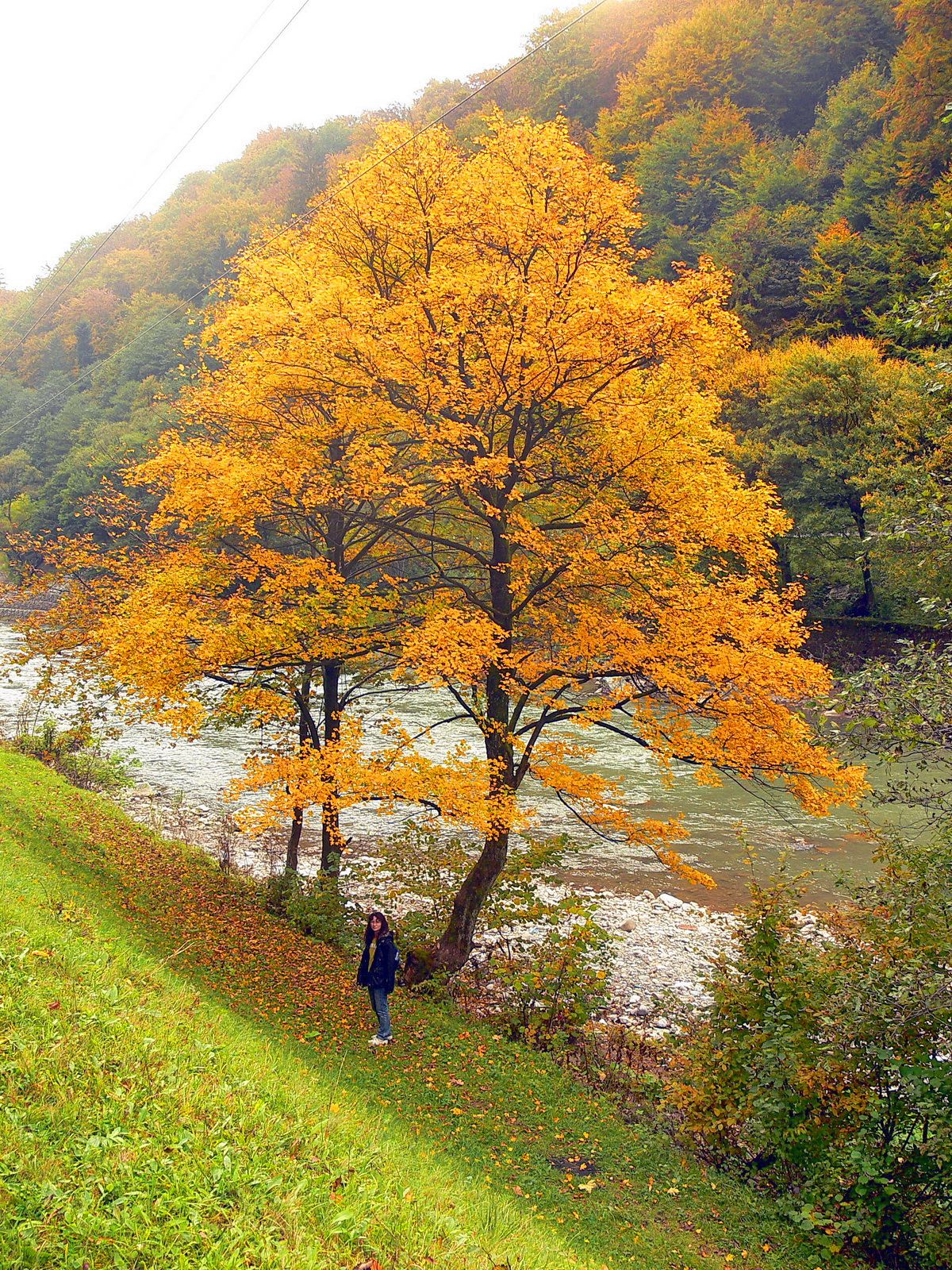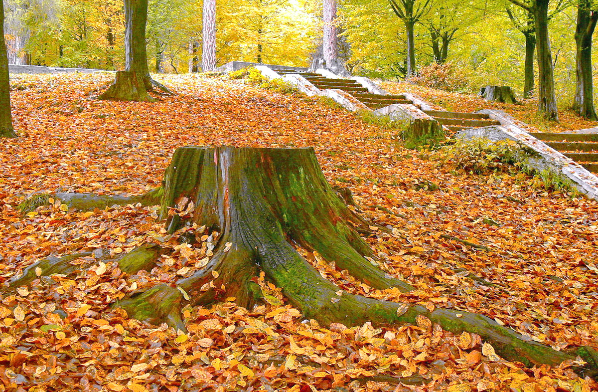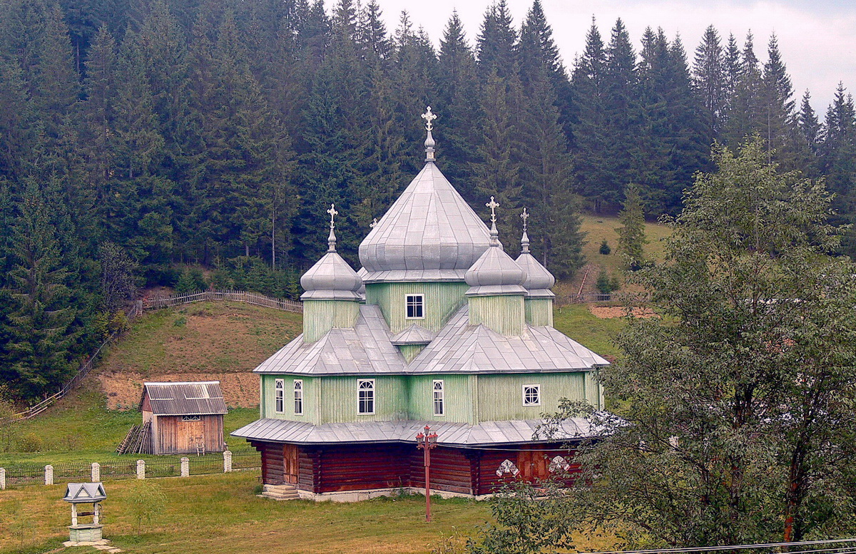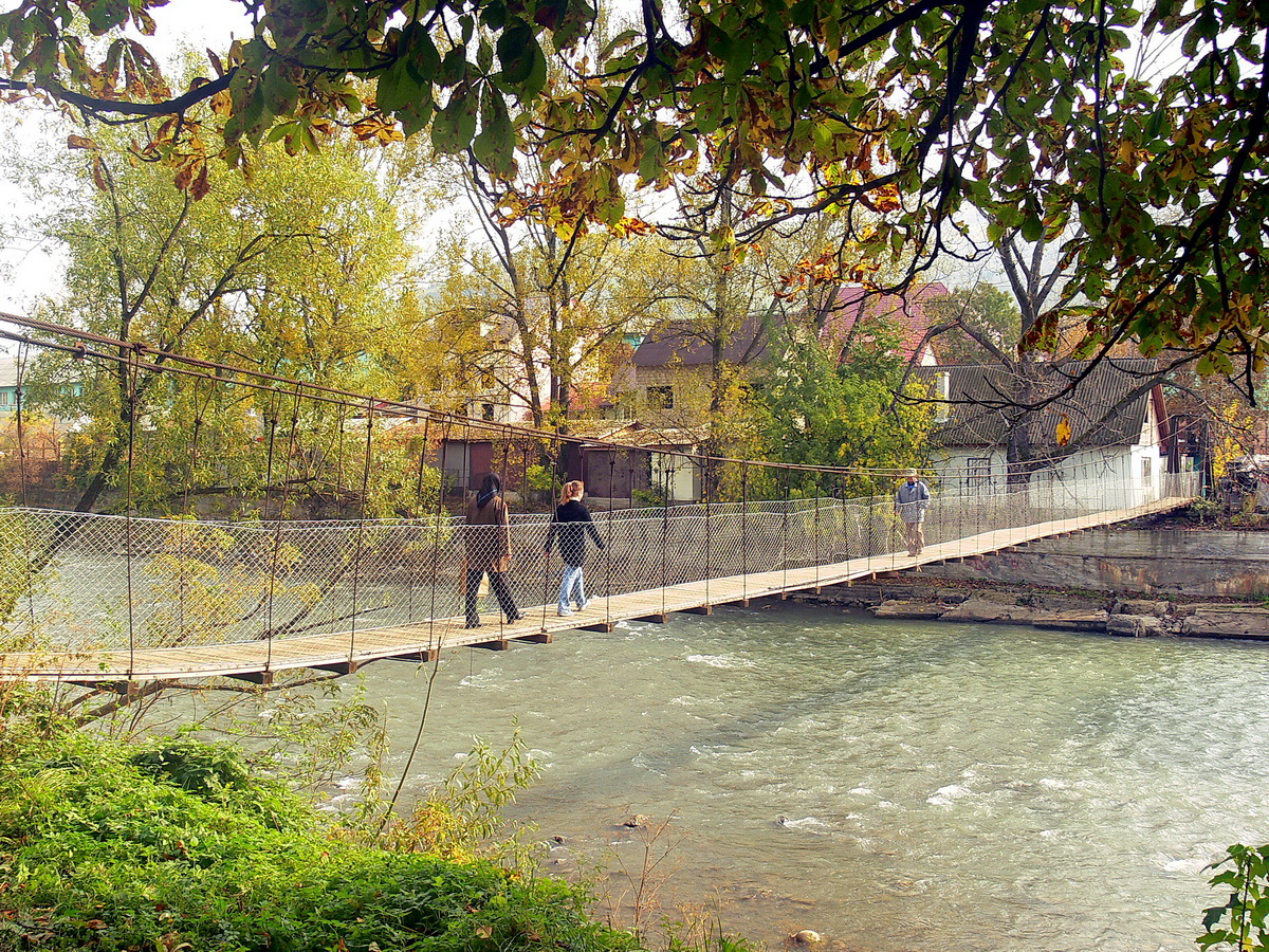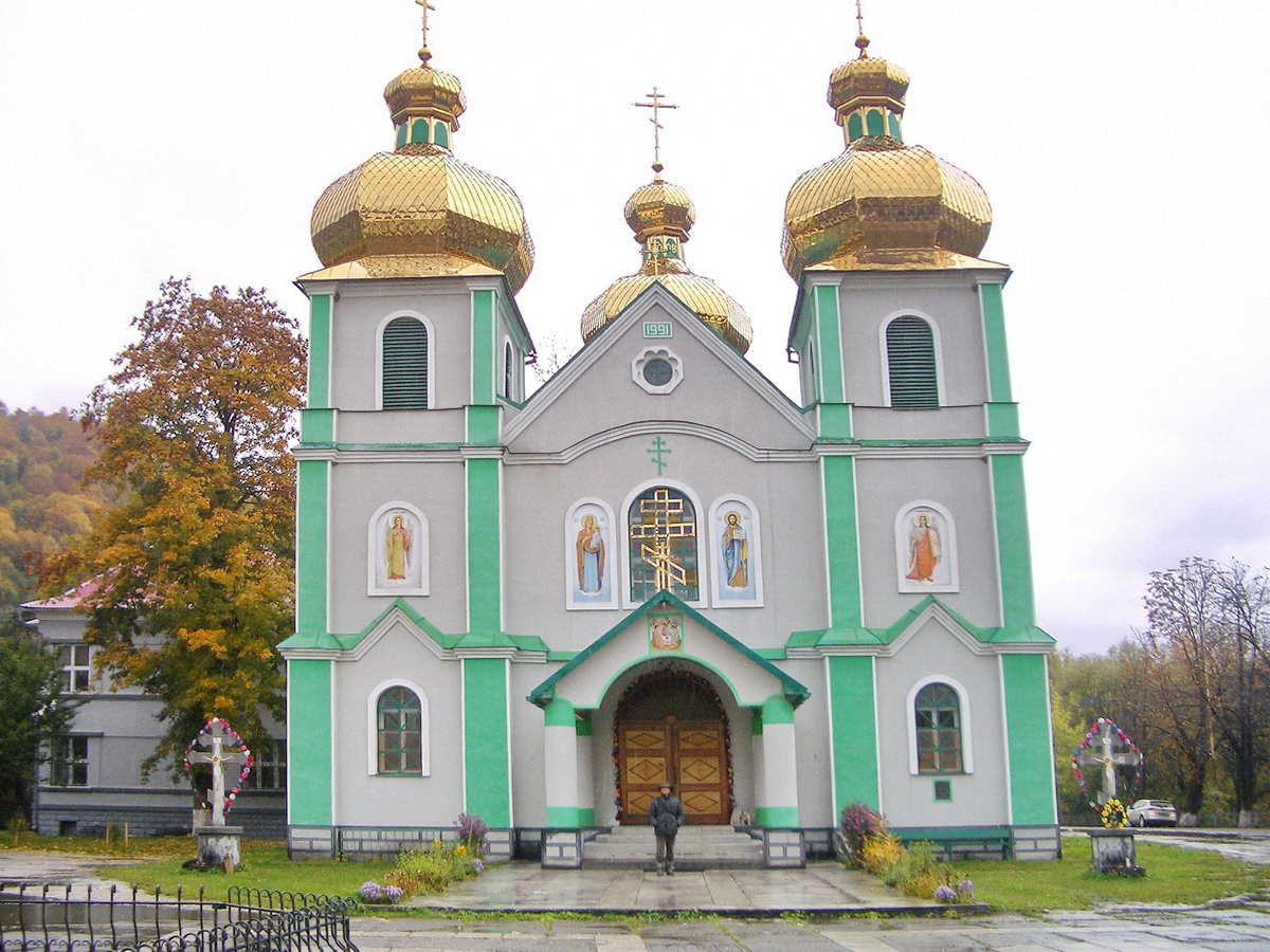 El día siguiente lo empleamos en conocer la pequeña ciudad y sus alrededores. El bello parque municipal a media ladera lucía grandes arboledas amarillas y rojas propias del otoño entre las que destacaban las formadas por un tipo de abeto llamados smereka (смерека), muy altos y de troncos rectilíneos con ejemplares que llegan a medir 50 m. muy populares en la región ya que su madera de fibras finas y rectas se usa para fabricar la popular trembita (Трембита), trompeta muy larga y estilizada de hasta 4m. de longitud y sin orificios, usadas en tiempos pasados como toque de llamada en los eventos de los pueblos y avisos en campo abierto, recordando en cierto modo a la trompa alpina aunque esta es de mayor peso y tamaño y se apoya en el suelo.