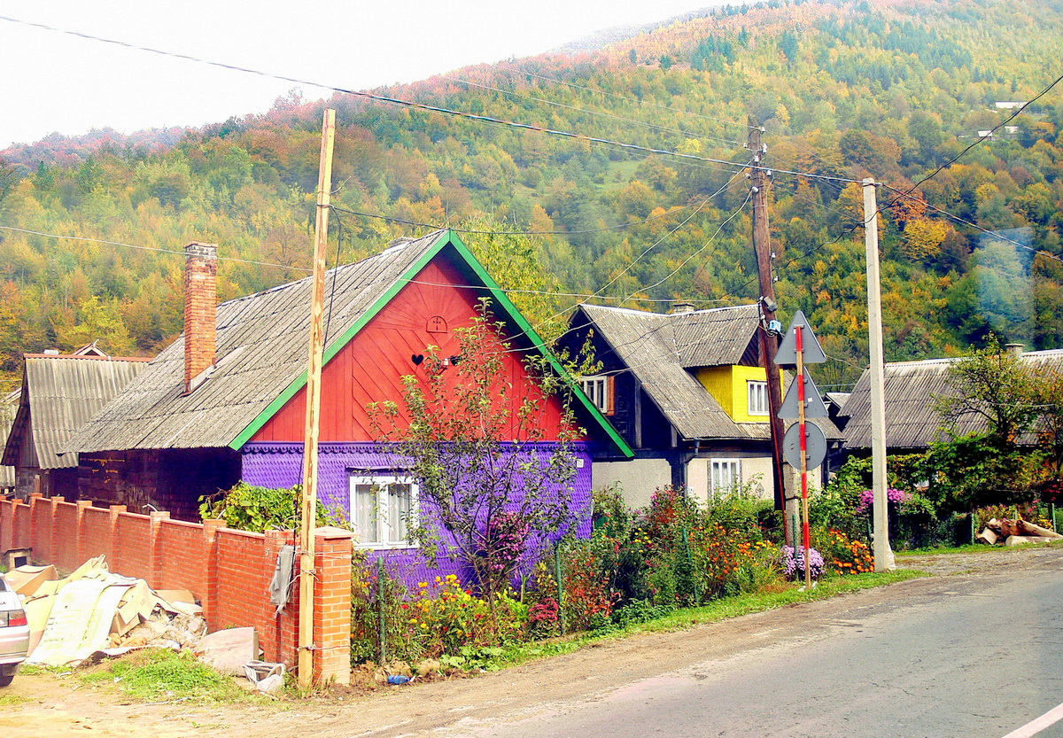 Algunas chocolatinas y unas cuantas fotos de ellos que miraban con curiosidad y diversión en la pantalla de la cámara dieron paso a la llegada de una carreta con una familia que llegaba a proveerse con emergencia de bebida. Al principio yo no entendía nada, pues no hacían más que sacar cajas y cajas de bebidas de la tienda, (sobre todo vodka y cerveza) echándolas al carro como si de una cosecha otoñal se tratase. Luego nos explicaron que era para una boda que comenzaba esa misma tarde y que si queríamos estábamos invitados a la celebración. Aunque los dos que nos invitaban tan alegremente estaba claro que la celebración la habían comenzado por su cuenta una horas antes. En medio de tanto jolgorio y efusividad nos presentaron a la novia, vestida de calle con una gabardina roja y luciendo una diadema hecha con pétalos de flores. Yo no entendía bien que siendo la novia fuese vestida así, si como decían la fiesta iba a comenzar en breve, aunque luego pensé que era viernes y recordé que muchas bodas en Ucrania, sobre todo en zonas rurales duran tres días, por lo que intuyo que lo del vestidito blanco tocaba al día siguiente. Nos costó unos cuantos minutos convencerlos de que teníamos planes para seguir hasta Rakhiv y que aunque agradecidos, teníamos que declinar la invitación.