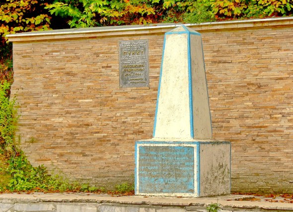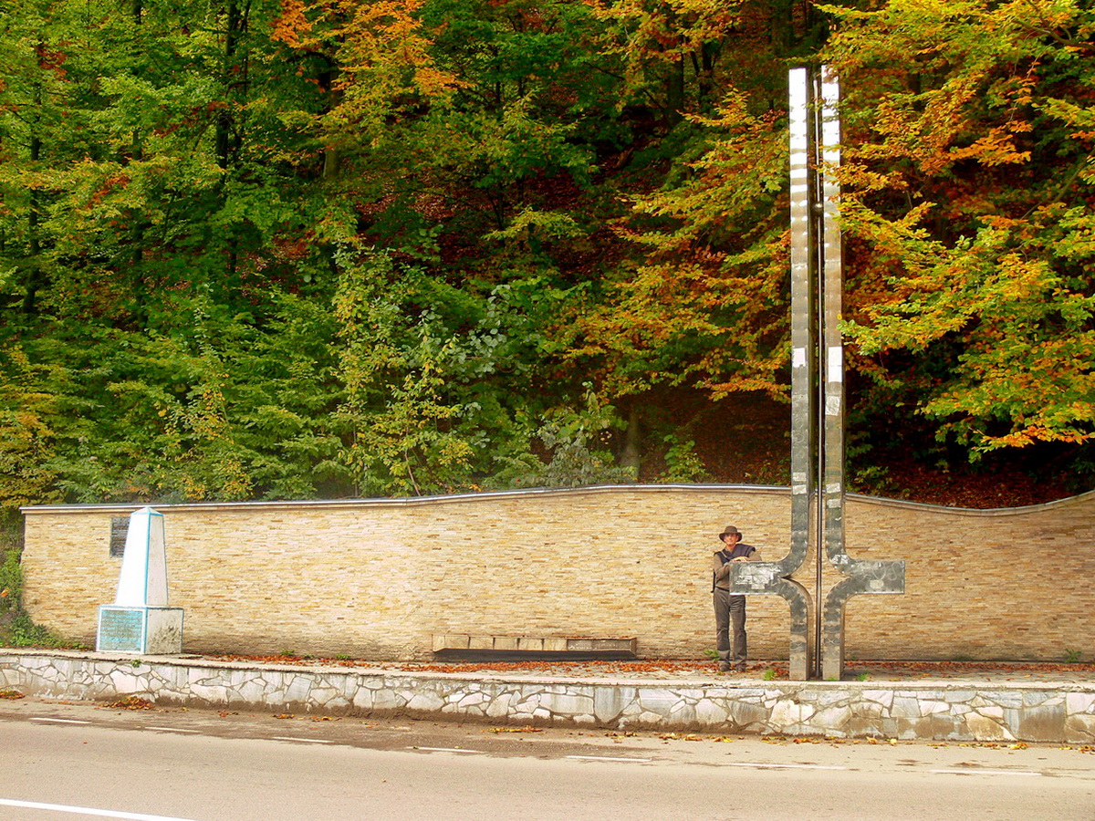 Como dije al principio del relato, de todos los Centros Geográficos calculados hasta la fecha, este es el que posee el entorno más hermoso con diferencia. En las estribaciones de los Cárpatos, a orillas de una pronunciada curva del río Tisza que discurre firmemente pegado a las faldas de las montañas, aprovechada por el ferrocarril para pasar al otro lado del río a través de un bello puente metálico y en medio de una naturaleza salvaje se encuentra el pequeño obelisco. Una modesta pirámide truncada que ha sobrevivido a dos guerras mundiales y en cuya base puede leerse la inscripción en latín: