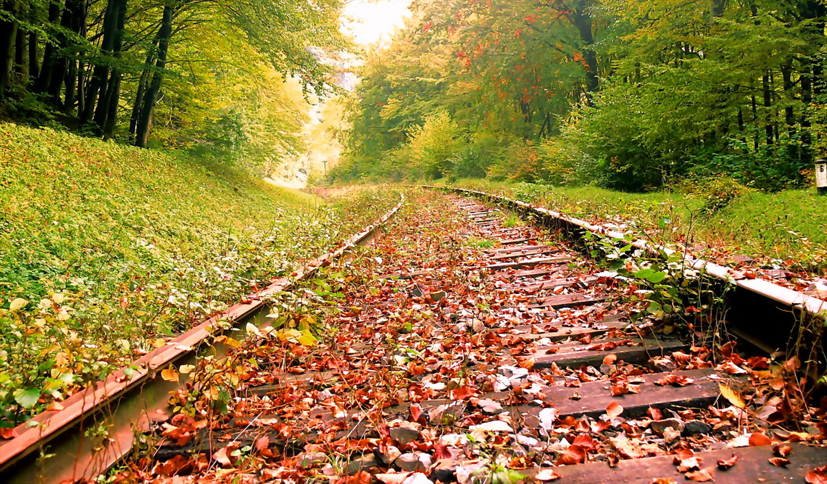Después de este segundo contratiempo y pensando qué iba a ser lo siguiente en ocurrir, pues como dicen “ no hay dos sin tres”, nos pusimos en camino. No estaba claro que la línea férrea siguiese en servicio por el estado oxidado de sus raíles y la vegetación en las traviesas, lo que añadía un toque bucólico al paseo por este improvisado camino alejado del ruido de la carretera y cuyo trazado era lo más cómodo en esta accidentada orografía.