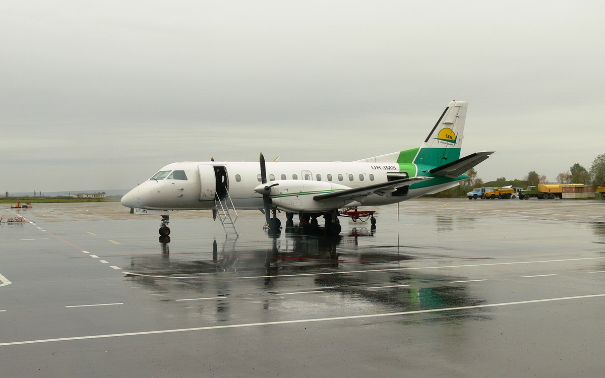 Ya en el aeropuerto pensaba si el viaje vuelta sería otra vez en el Antonov que nos trajo, pero no, esta vez se trataba de un Saab 340 más moderno aunque de rara disposición.