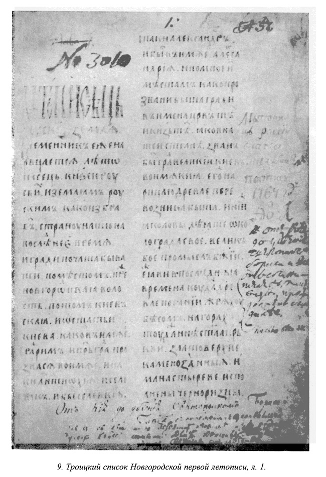 La Primera Crónica de Nóvgorod (NPL): Novgorodskaya Pervaya Letopis (1016-1471) es la crónica más antigua existente de la ciudad y territorios de la que fue capital del pueblo Rus hasta el 882, año en el que Oleg transfiere su administración a Kiev. Desde esta fecha hasta 1020, Nóvgorod fue parte de la Rus de Kiev y sus príncipes eran nombrados por el Gran Príncipe de Kiev. Usualmente este nombramiento recaía sobre uno de sus hijos mayores.
