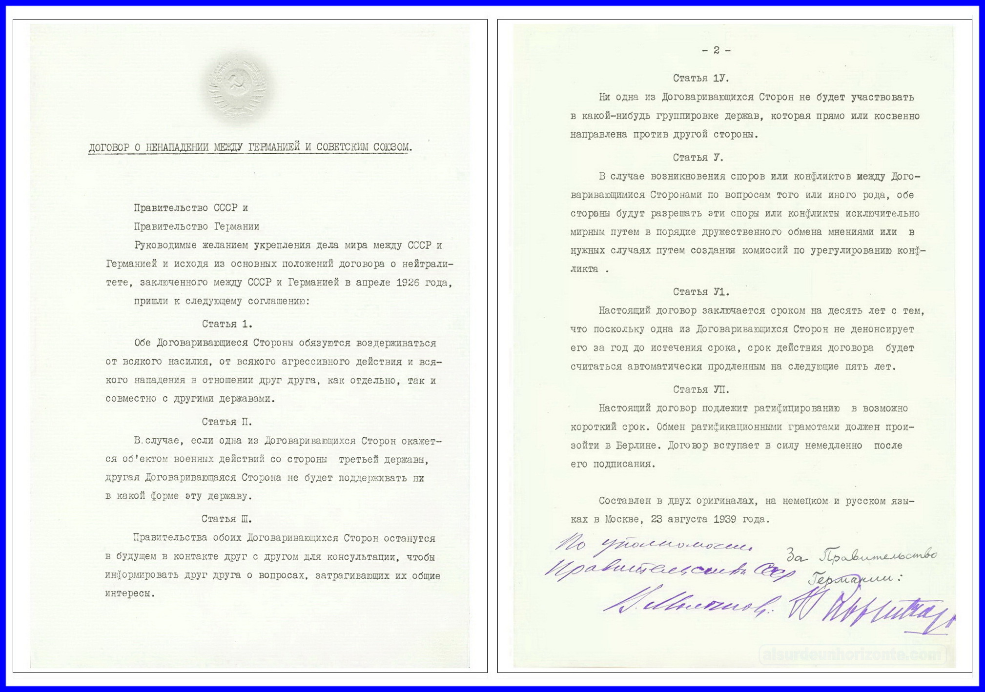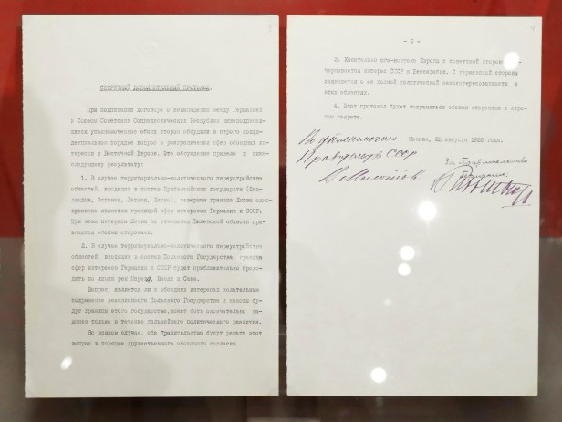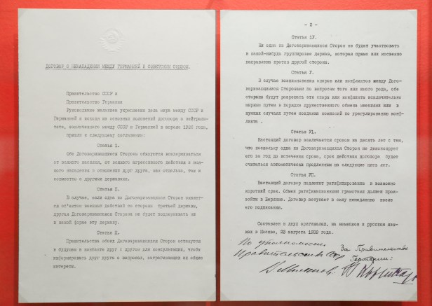Hoy 20 de agosto se cumple un año de la exhibición en Moscú del Protocolo secreto incluido en el Tratado de No Agresión germano-soviético de 1939, más conocido como el Pacto Ribbentrop-MólotovLos documentos originales en ruso y alemán se expusieron por primera vez al público en la Sala de Exposiciones de la Institución “Archivos Estatales de la Federación de Rusia” poniendo fin a las teorías negacionistas que aseguraban la inexistencia o falsificación de estos documentos que habían permanecido ocultos durante 80 años.