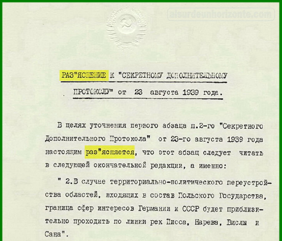 23 de agosto. Protocolo adicional secreto. (Pacto Ribbentrop-Mólotov)