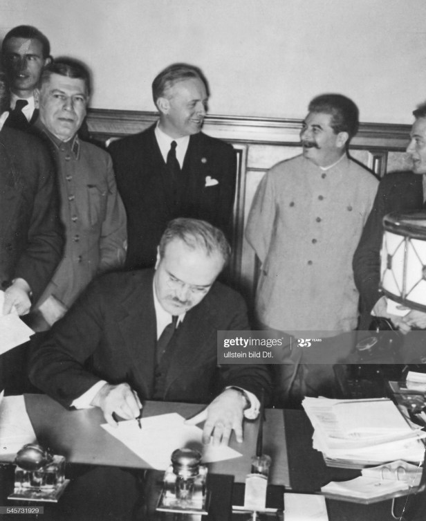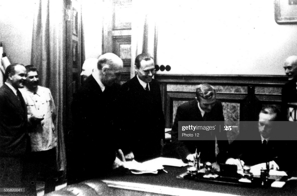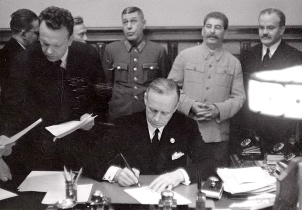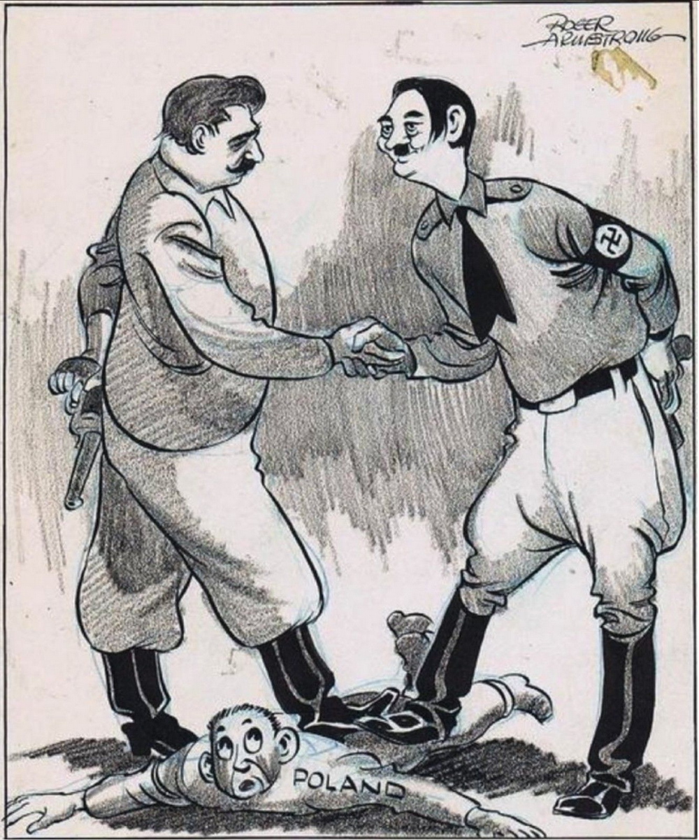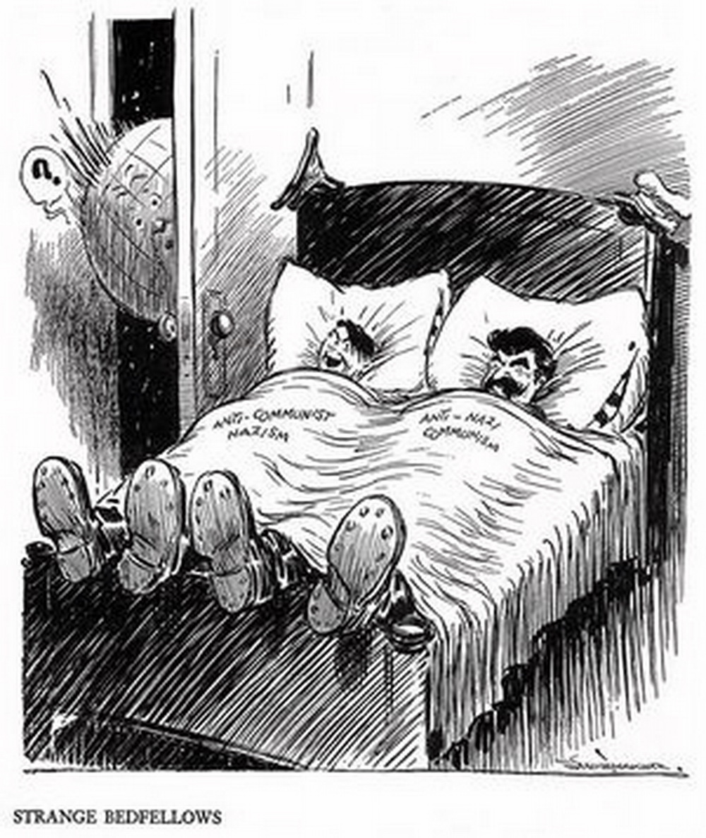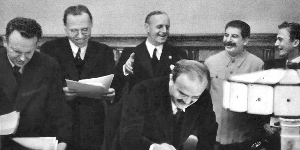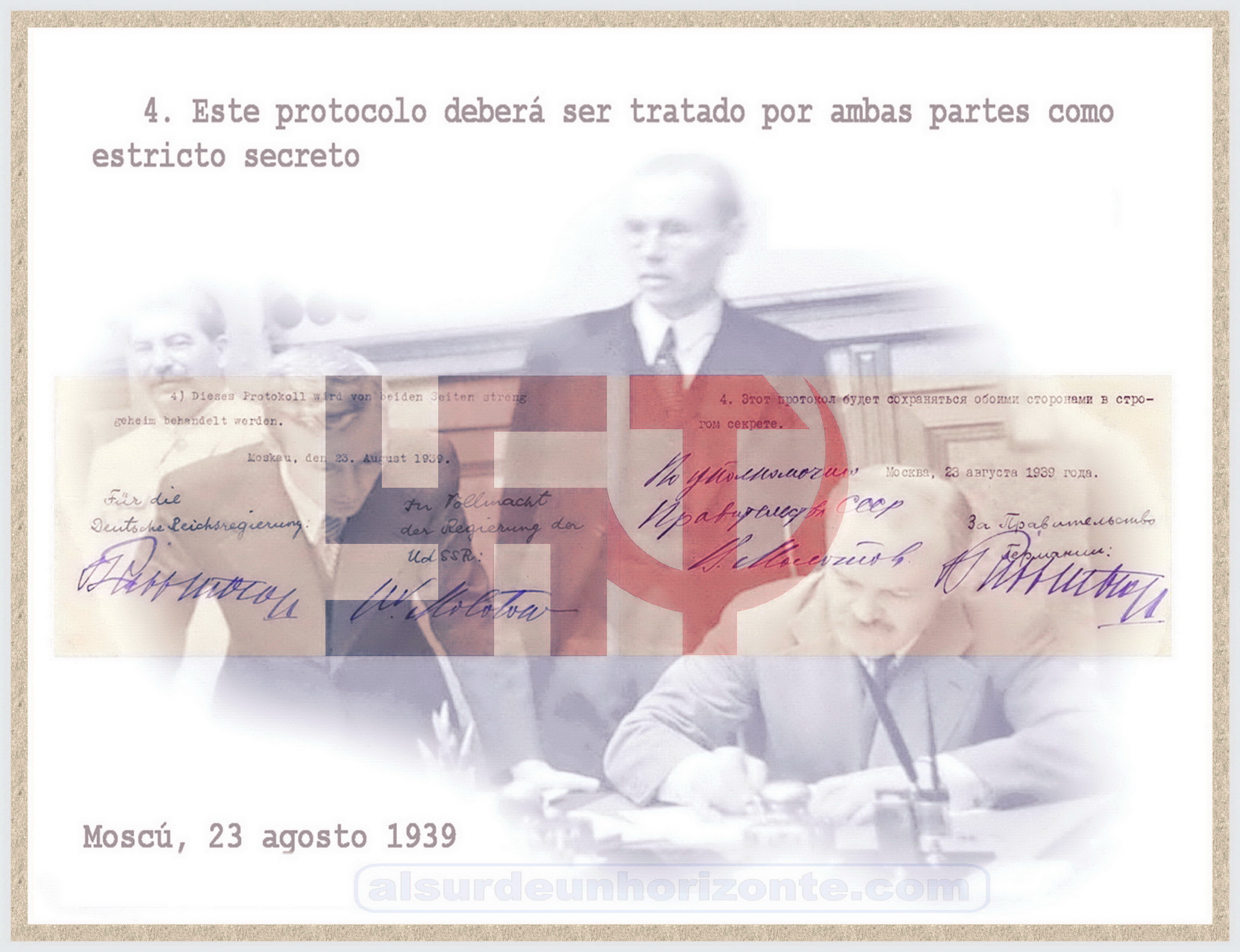 La forzada alianza de dos ideologías tan opuestas como la nazi y la soviética, provocada por el ansia desmedida de poder y expansión rara vez se ha manifestado de forma tan resumida y contundente como en los acuerdos germano-soviéticos de 1939 que contemplaban en secreto el reparto de Europa del Este.