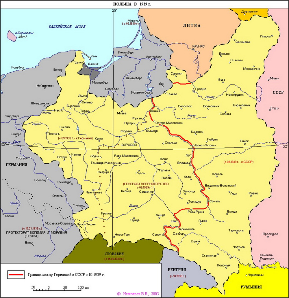 Mapa Linea división Polonia octubre 1939. © Nikolaev V.V. 2003