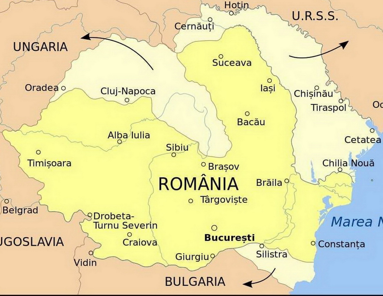 Rumanía perdió al este Besarabia para formar parte de la RSS. de Moldavia y el norte de Bucovina, anexionada a la RSS. de Ucrania