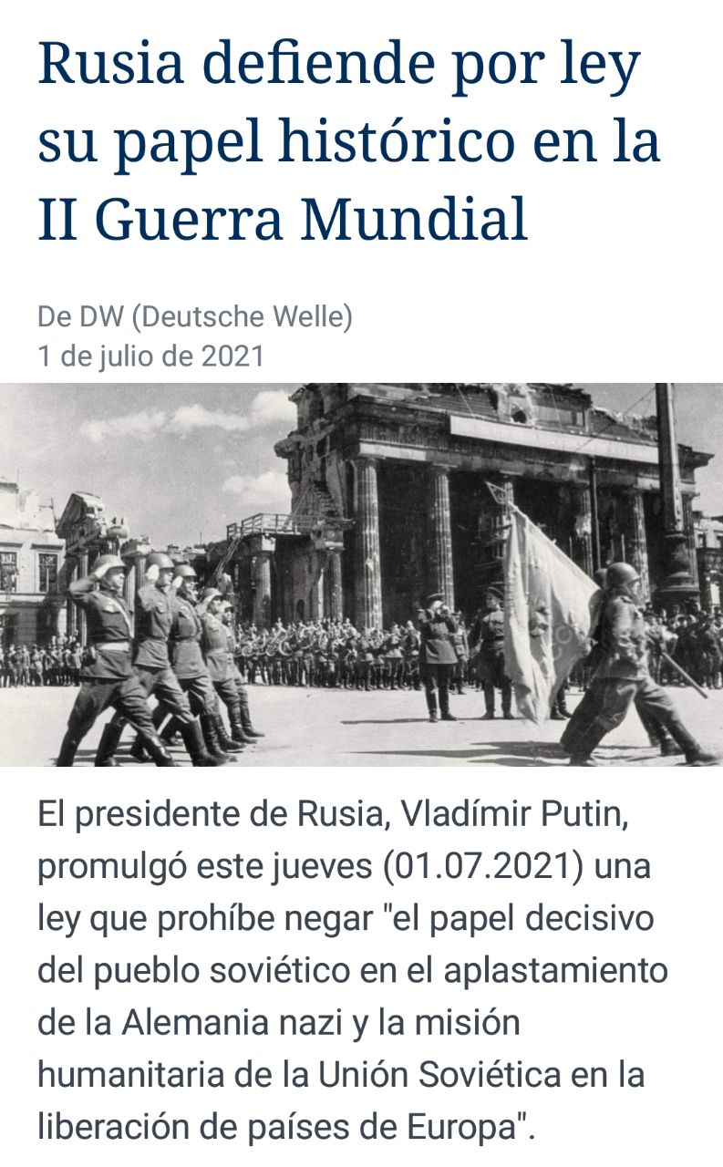 Rusia da un paso más en la coerción de la libertad de opinión. Otro ejemplo del énfasis puesto en el final de la contienda al elevar a categoría de ley un hecho que resulta obvio, pero que desvía de nuevo la atención sobre sus comienzos. En cuanto a la «misión humanitaria» ya sabemos el destino político e ideológico impuesto durante décadas a todos estos países satélites.